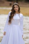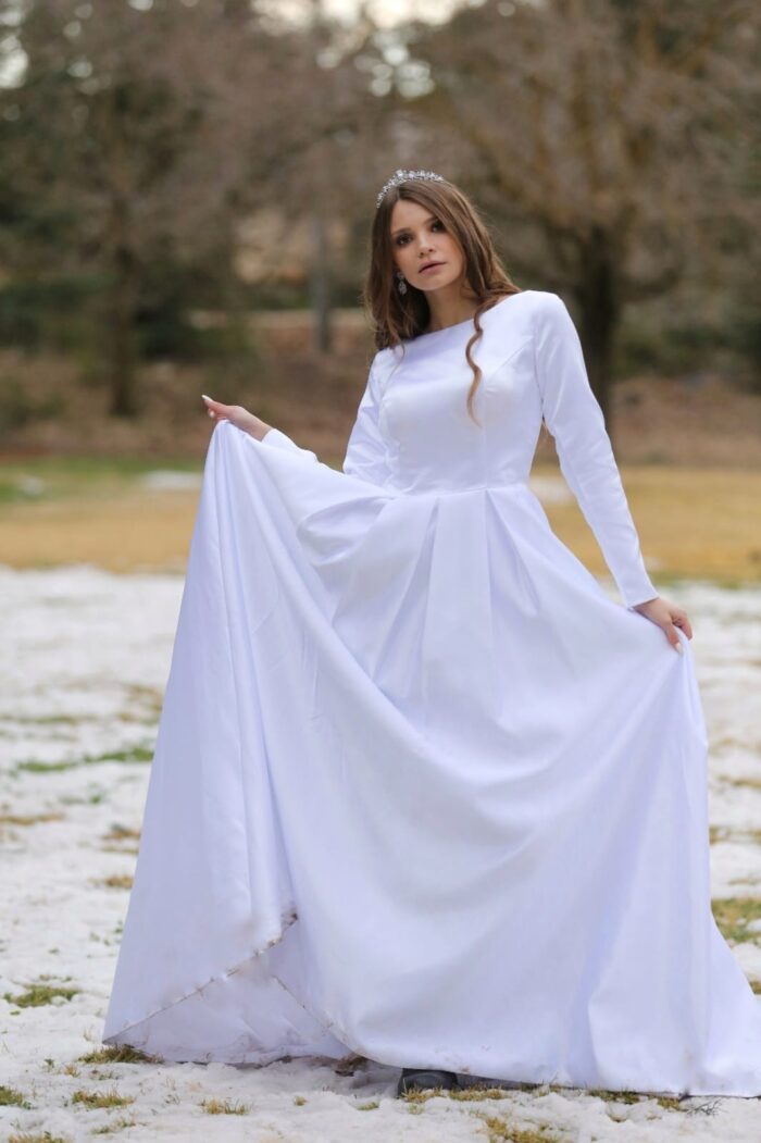 שמלת כלה צנועה קלאסית מבד סאטן.